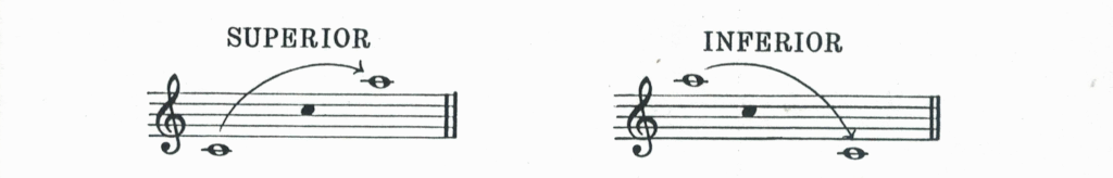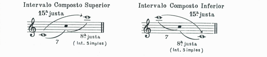 Os intervalos compostos também podem ser Superiores e Inferiores. Superiores quando a primeira nota é mais grave que a segunda, e Inferiores quando a primeira nota é mais aguda.