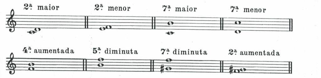 Os intervalos dissonantes são 2ªs e 7ªs maiores e menores e todos os intervalos aumentados e diminutos.
