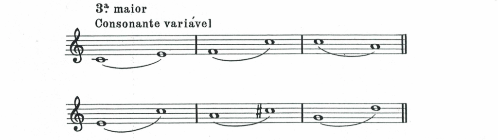 INTERVALOS VARIÁVEIS — são os de 3ªs e 6ªs maiores e menores, porque podem variar de classificação, sem perderem o efeito de Consonantes. Chamam-se também Imperfeitos.